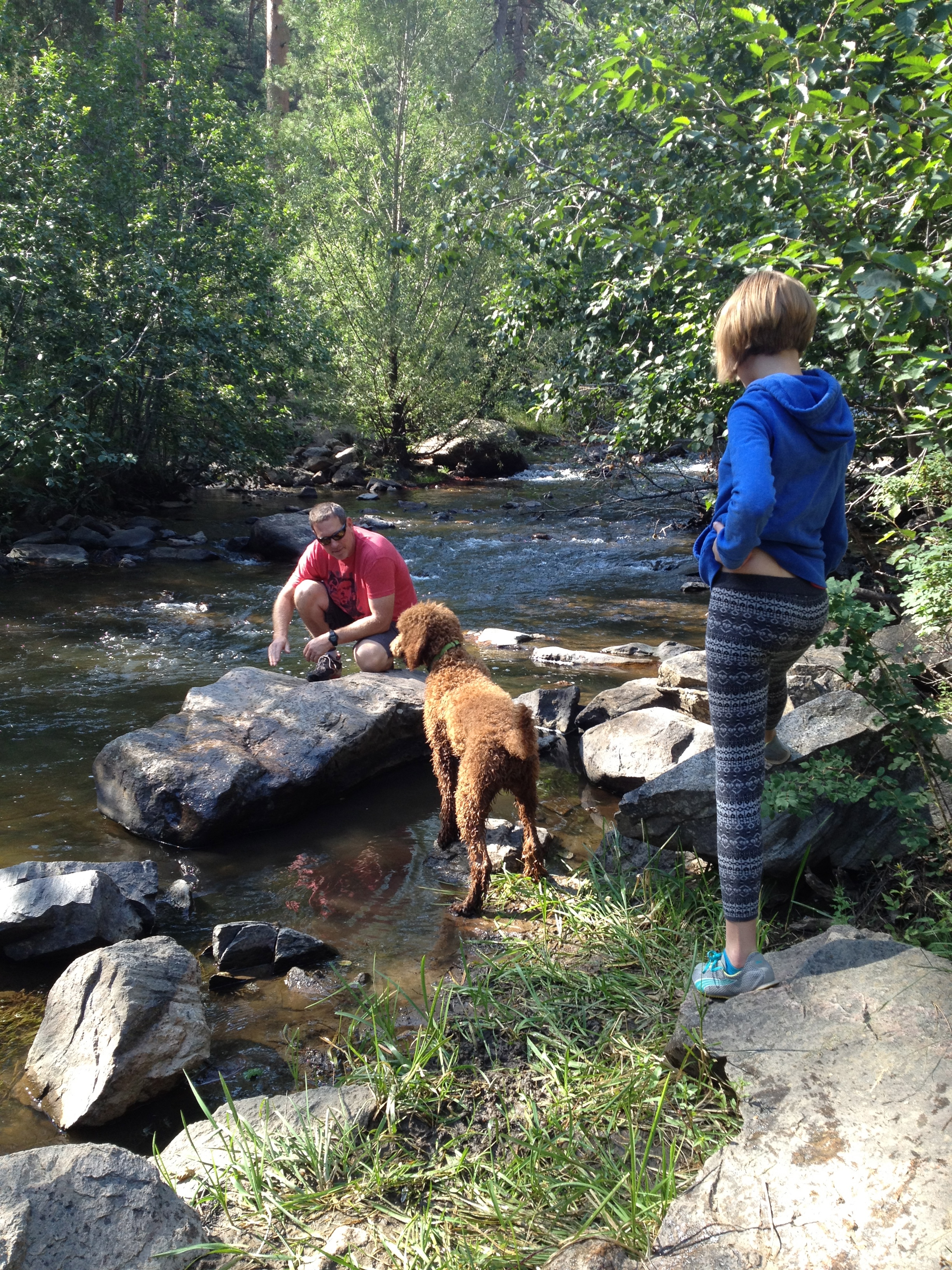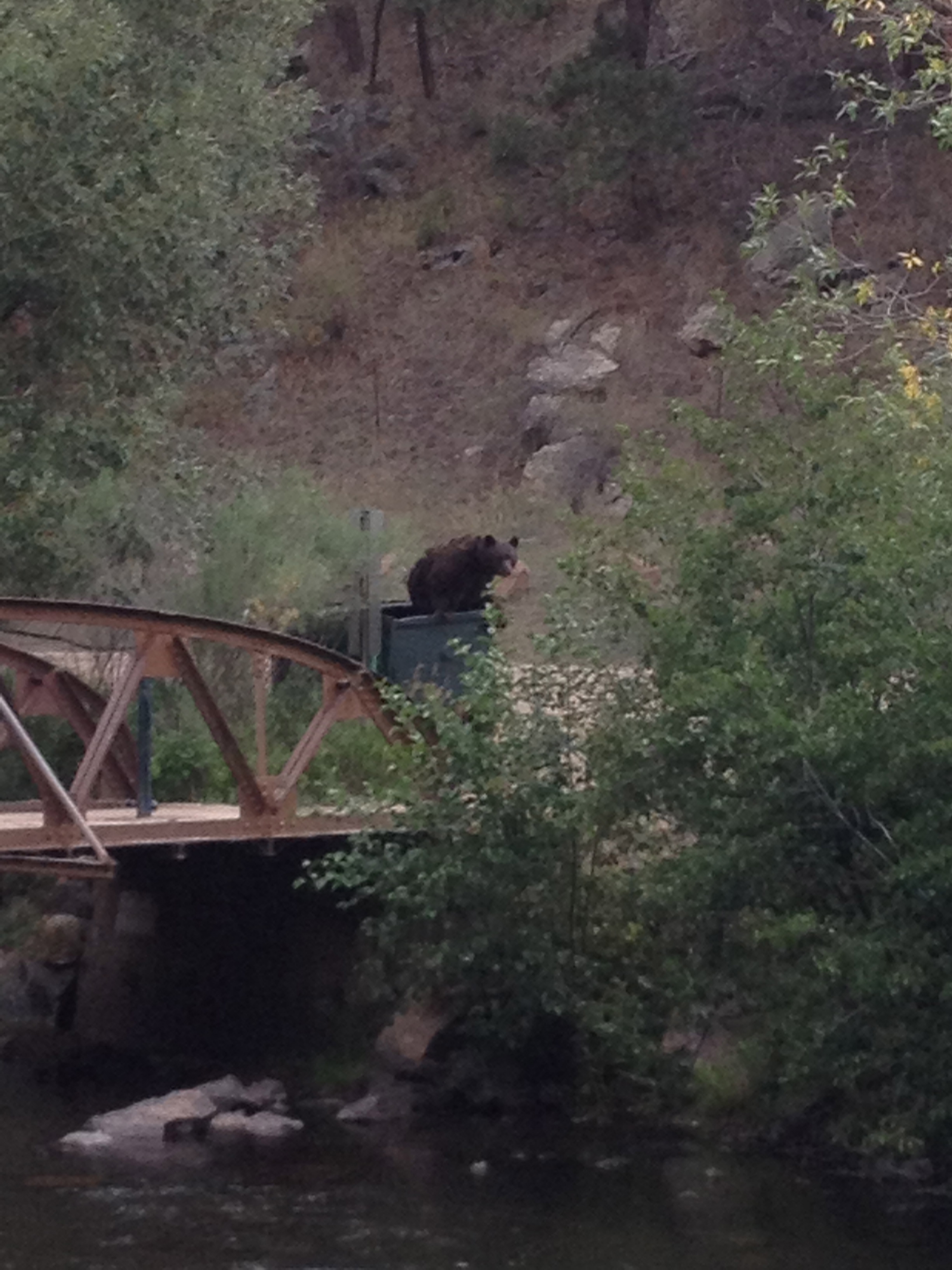After they finished on the slackline, John and the girls ran into a momma bear and her 3 cubs. The mom was digging in the dumpster. John and the girls took off their shoes and crossed the creek to avoid them. It was an unusual sighting because it was 6pm.