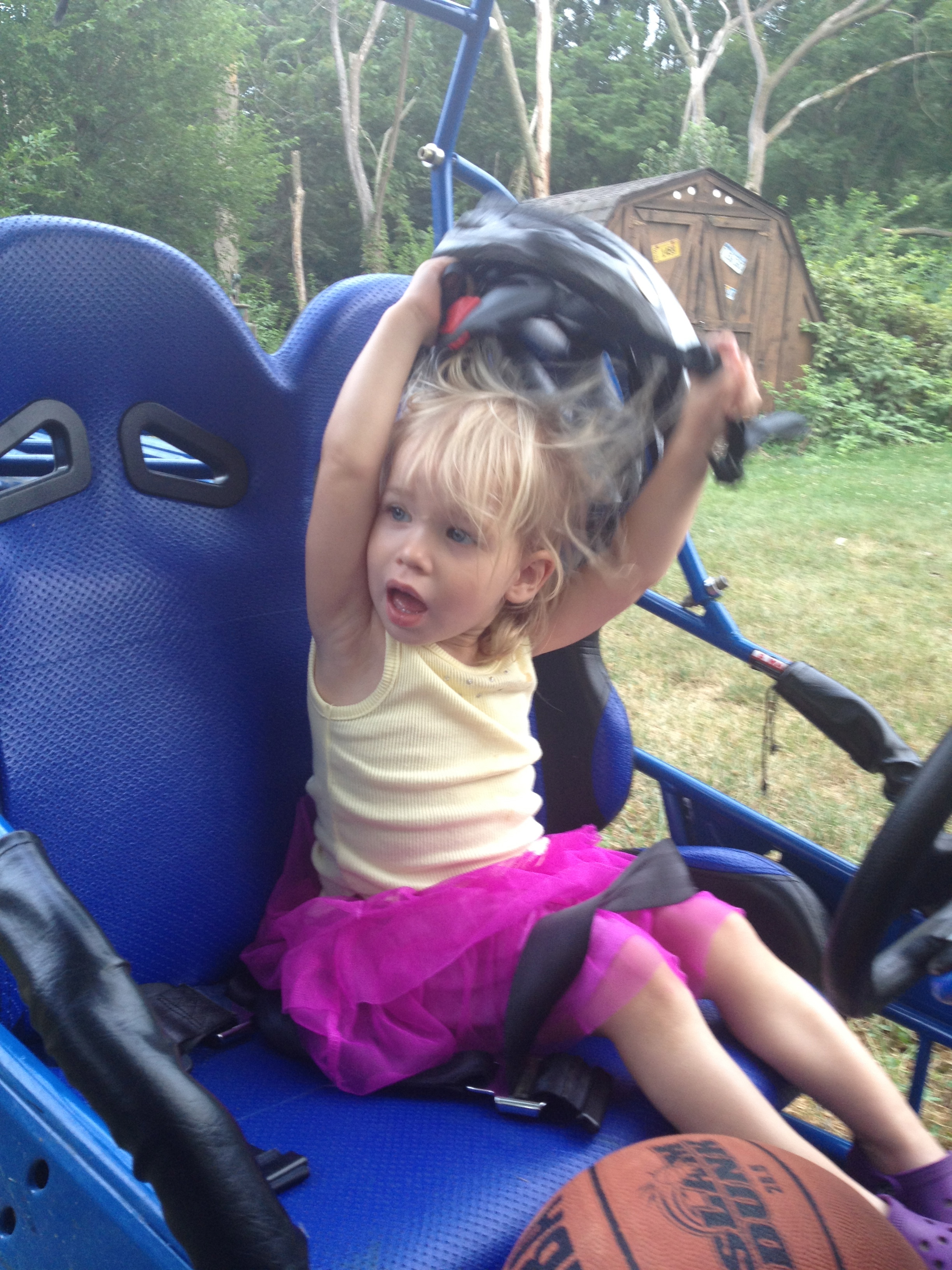 - Cousin Veda gets a ride on the go-kart.