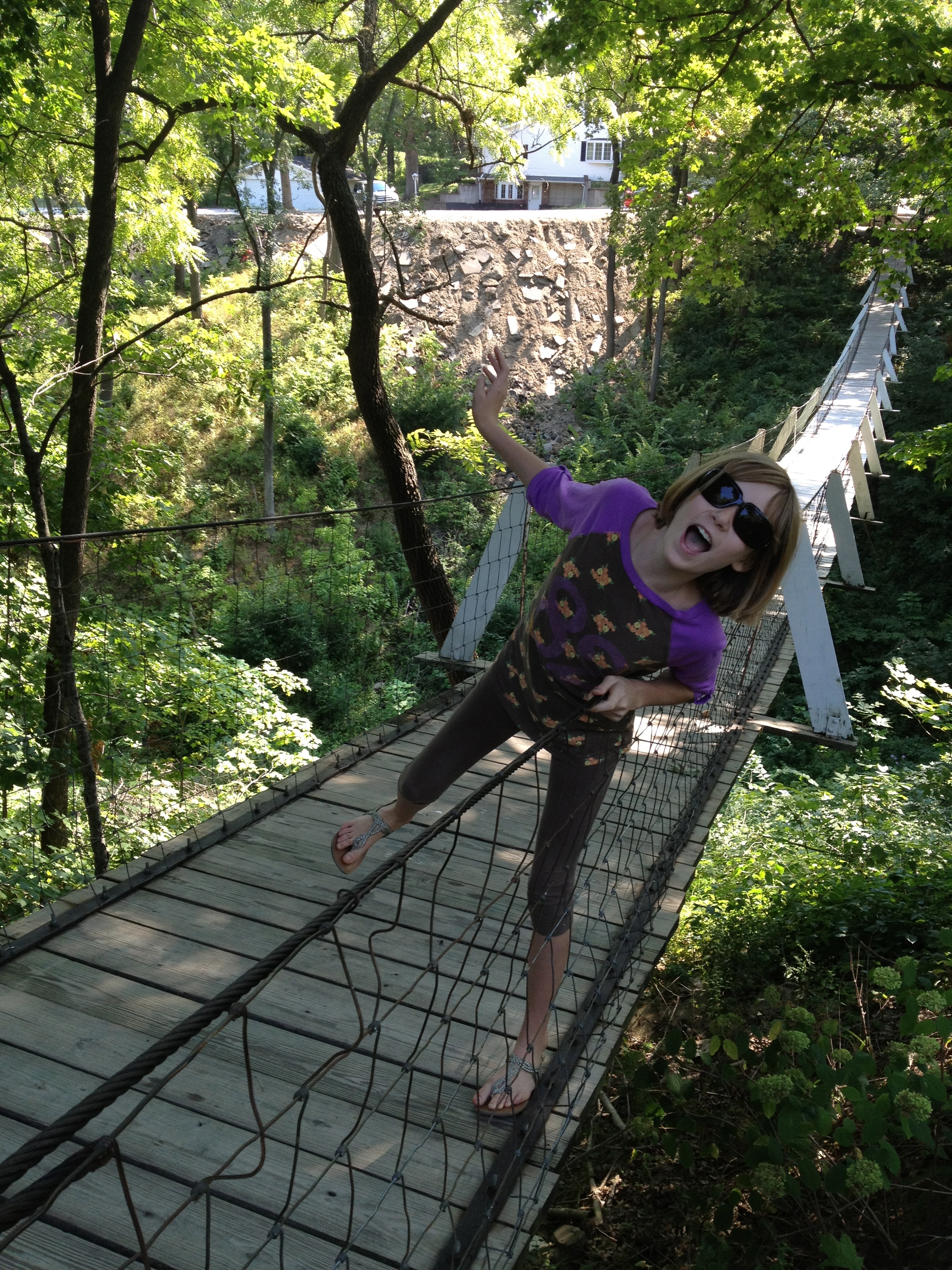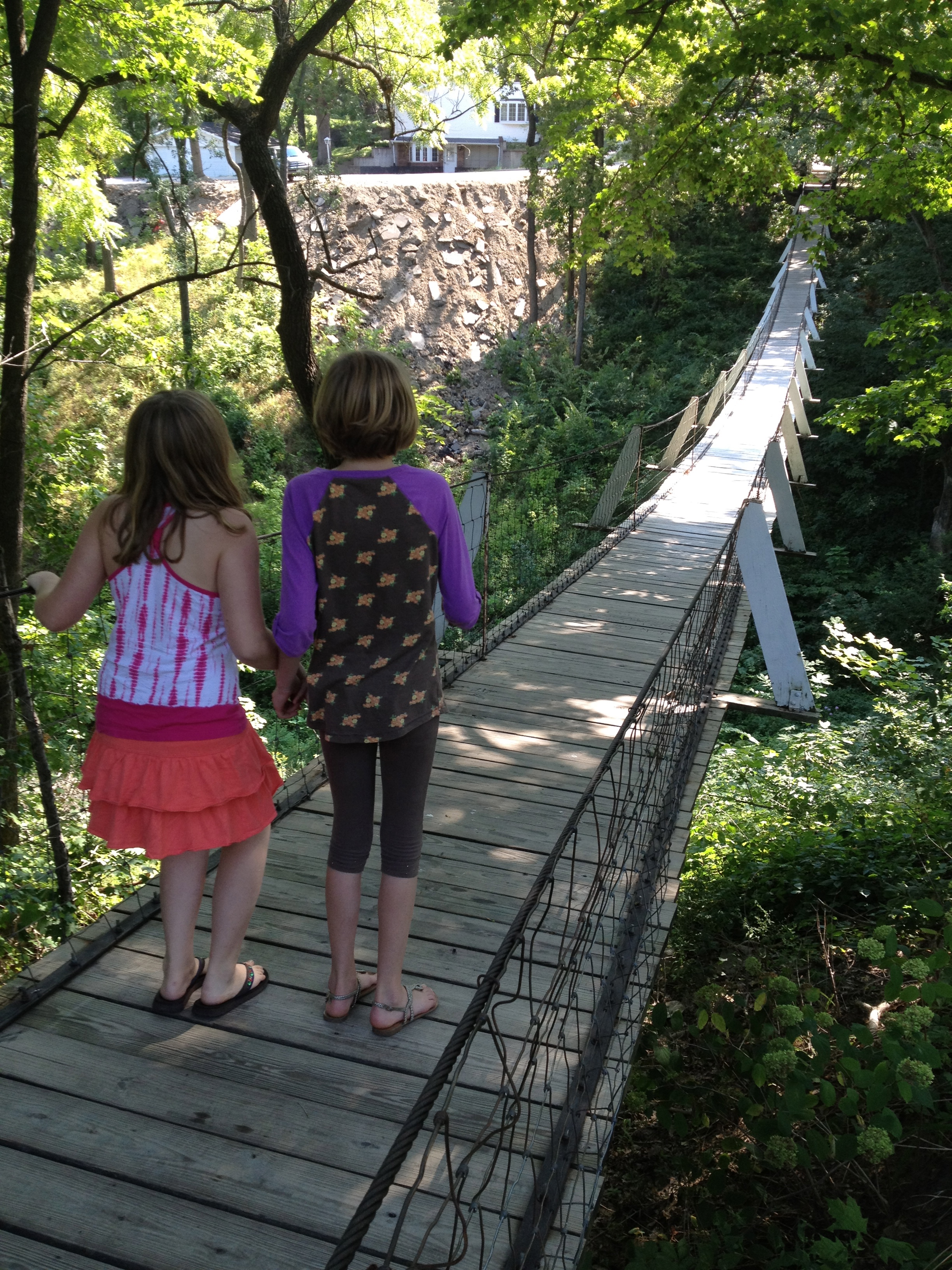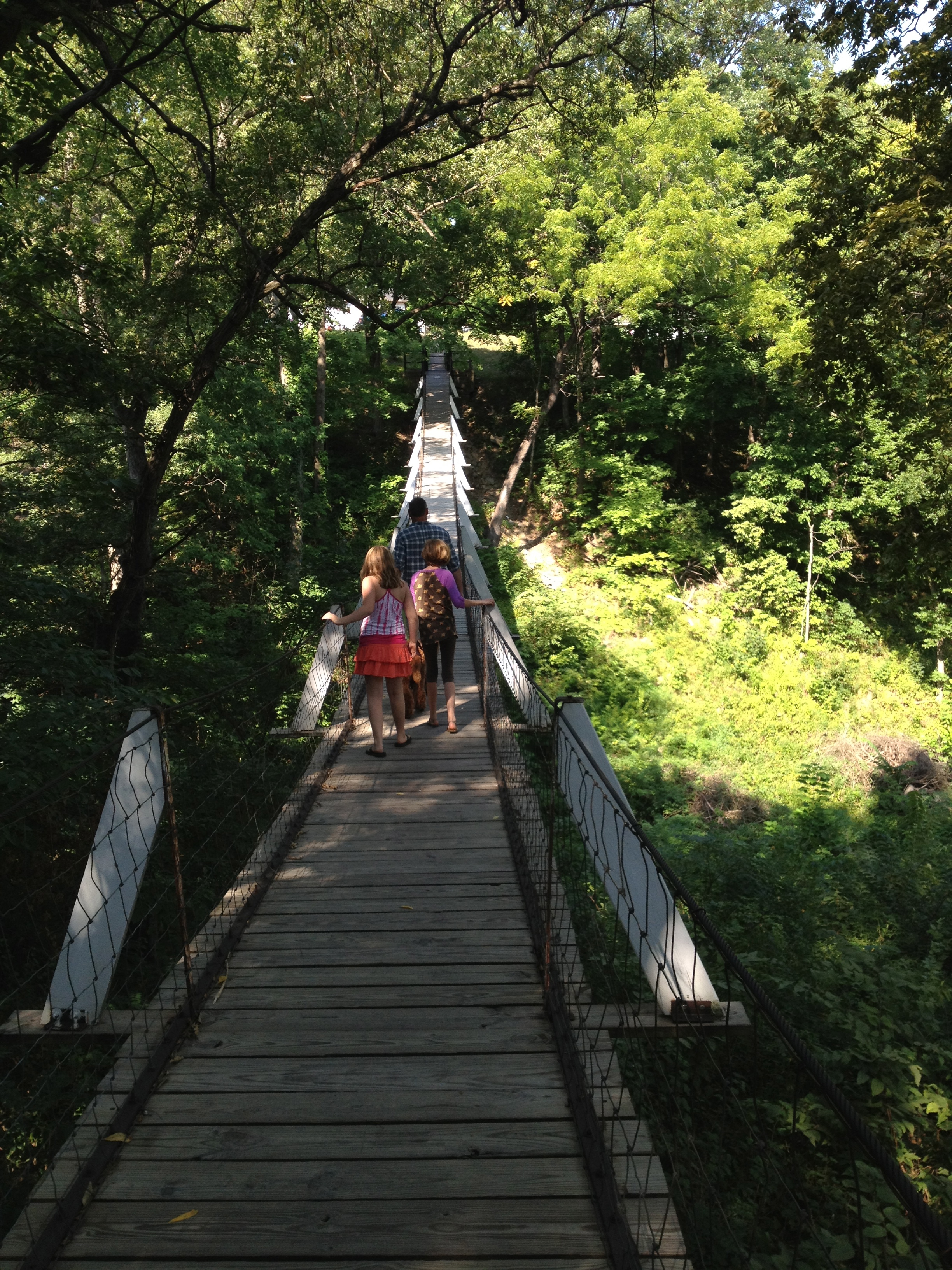 - Crossing the swinging bridge in Columbus Junction.